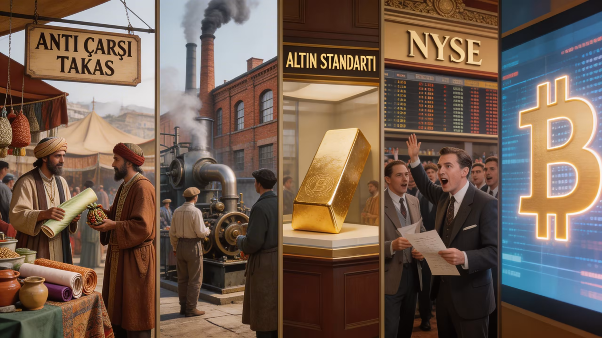 MÖ 6000'de Mezopotamya'da başlayan takas sisteminden, bugün saniyede milyarlarca doların hareket ettiği dijital finans ağlarına kadar insanlık, ekonomik örgütlenmede devasa bir yol kat etmiştir.